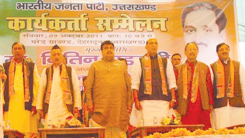 Boosting up the moral of BJP workers, Shri Gadkari said the clean image of the party and the developmental works done by it in recent years would be the decisive factor for the victory in the upcoming elections. “Only those who have been putting their blood and sweat in the progress of the state and its people will be hand out tickets for the elections. The trust of people in BJP has distinctly increased and it vouches for our victory in the 2012 elections,” he said, urging Chief Minister Shri Khandori to make Uttarakhand an ideal state.