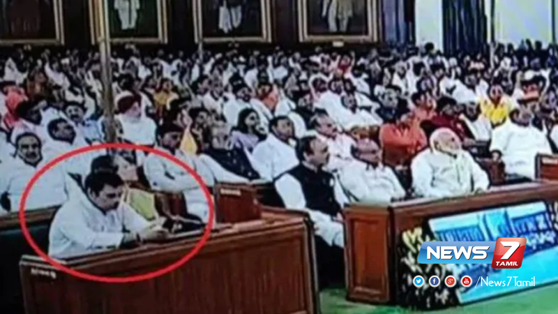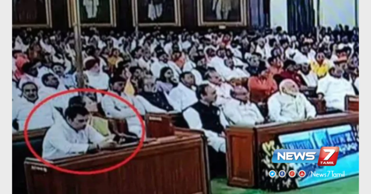 Congress president Rahul Gandhi was seen busy with his phone during the joint session of the Parliament today when President Ram Nath Kovind was making important announcements in his address