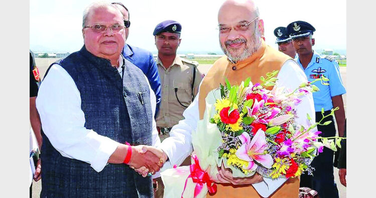 J&K Governor Satya pal Malik welcoming Union Home minister Amit Shah in Srinagar