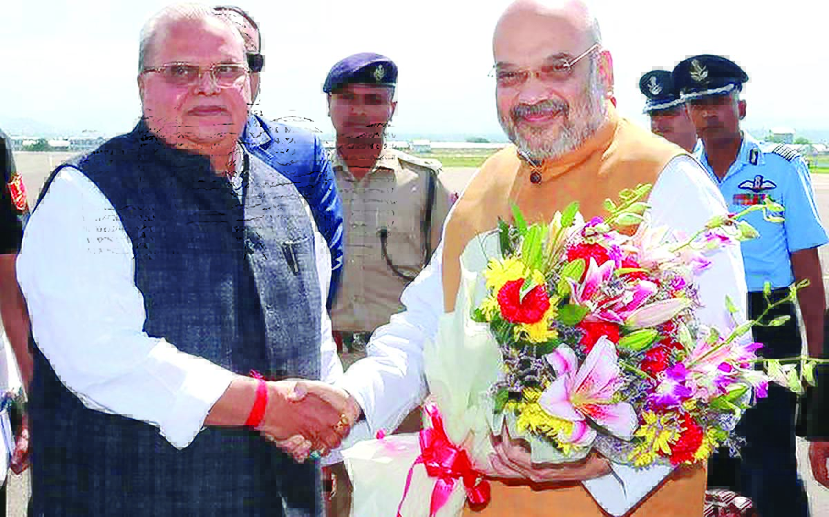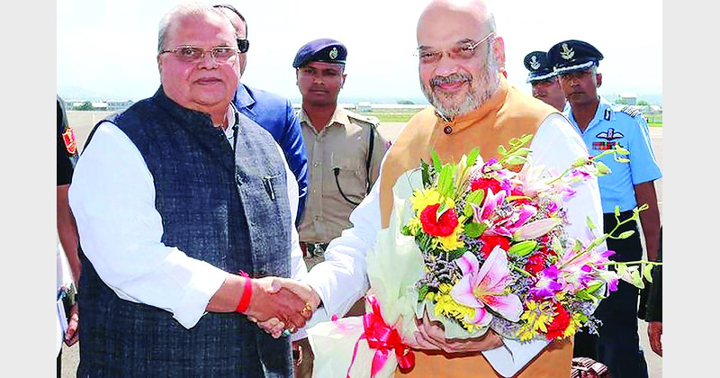 J&K Governor Satya pal Malik welcoming Union Home minister Amit Shah in Srinagar