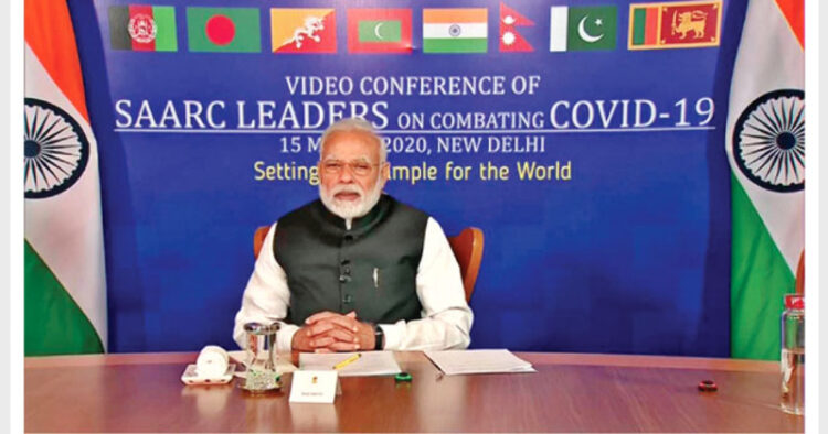 PM Modi addressing a SAARC meet on COVID-19