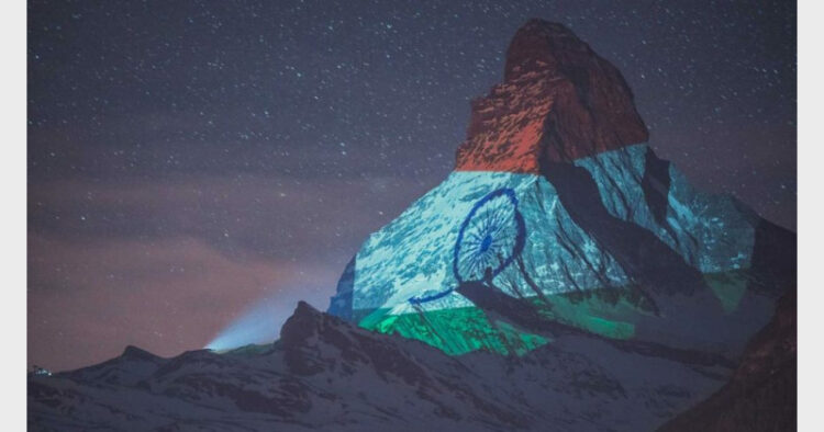 The world-famous Matterhorn mountain in Switzerland which is one of the acclaimed peaks for mountaineers in the world lit up with a projection of the Indian flag yesterday. Created by Swiss light artist, Gerry Hofstetter, the Indian Flag projection was beamed on the mountain peak to extend a message of hope and positivity, say reports.