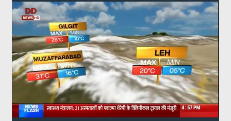 Amit Khare, Secretary, Information and Broadcasting, said that DD News and All India Radio would telecast and broadcast weather reports and temperatures of Indian towns and cities, including Mirpur, Muzaffarabad and Gilgit in their prime time news bulletins. The bulletin will be telecast at 8.55 am and 8.55 pm.