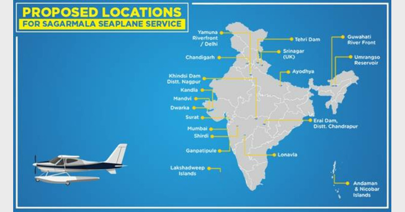 Several destinations are envisaged for seaplane operations.The proposed Origin-Destination pairs under Hub and Spoke model include various islands of Andaman & Nicobar and Lakshadweep, Guwahati Riverfront & Umranso Reservoir in Assam, Yamuna Riverfront / Delhi (as Hub) to Ayodhaya, Tehri, Srinagar(Uttrakhand), Chandigarh and many other tourist places of Punjab & HP; Mumbai (as Hub) to Shirdi, Lonavala, Ganpatipule; Surat (as Hub) to Dwarka, Mandvi & Kandla; Khindsi Dam, Nagpur & Erai Dam, Chandrapur (in Maharashtra) and/or any other Hub & Spoke suggested by the Operator.