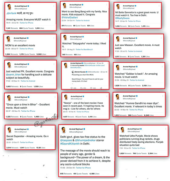 The list of Hindi films recommended by Kejriwal is long. Swara Bhasker’s Nil Battey Sannata, Taapsee Pannu’s Saand Ki Aankh, and Ranveer Singh’s 83 were all declared tax-free by Kejriwal in Delhi. Irrfan Khan’s Madaari, Sreedevi’s Mom, Aamir Khan’s PK, Aamir Khan’s Secret Superstar, Hrithik Roshan’s Bang Bang, Amitabh Bachchan’s Satyagraha, Shirish Kunder’s Kriti, Sonam Kapoor’s Neerja, Vicky Kaushal’s Masaan, Akshay Kumar’s Gabbar is Back, Naeem Siddiqui’s Humne Gandhi Ko Maar Diya, Shahid Kapoor’s Udta Punjab, Nitin Chandra’s Once Upon a Time in Bihar, were fortunate enough to be positively reviewed by Delhi CM Kejriwal.
