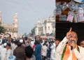 Bandi Sanjay further criticized the AIMIM party, stating, “Many Muslim leaders from the old city have talked to me and said that Bandi Sanjay is right; Bandi Sanjay wants to transform the old city into a new one. What is wrong with it? Why is AIMIM not making an old city a new city? If you have guts, answer this: Why are you not contesting outside Hyderabad?”