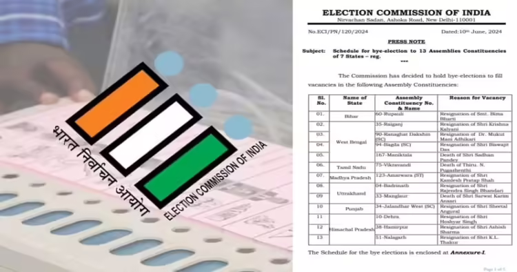 The Election Commission of India has announced the upcoming bye-elections to fill vacancies in 13 Assembly Constituencies spread across seven states: Bihar, West Bengal, Tamil Nadu, Madhya Pradesh, Uttarakhand, Punjab, and Himachal Pradesh.