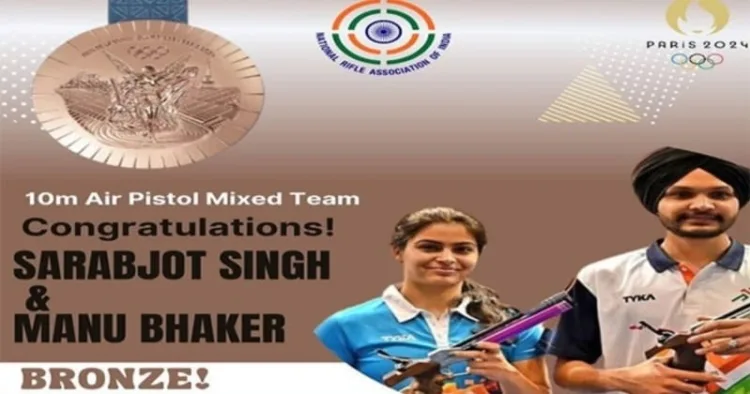 The NRAI celebrated the success saying “India wins bronze in the mixed team 10m air pistol as @realmanubhaker and @Sarabjotsingh30 beat Korea’s Oh Ye Jin & Lee Won Ho 16-10 in the bronze match. Second medal for Manu at the Games. History!”