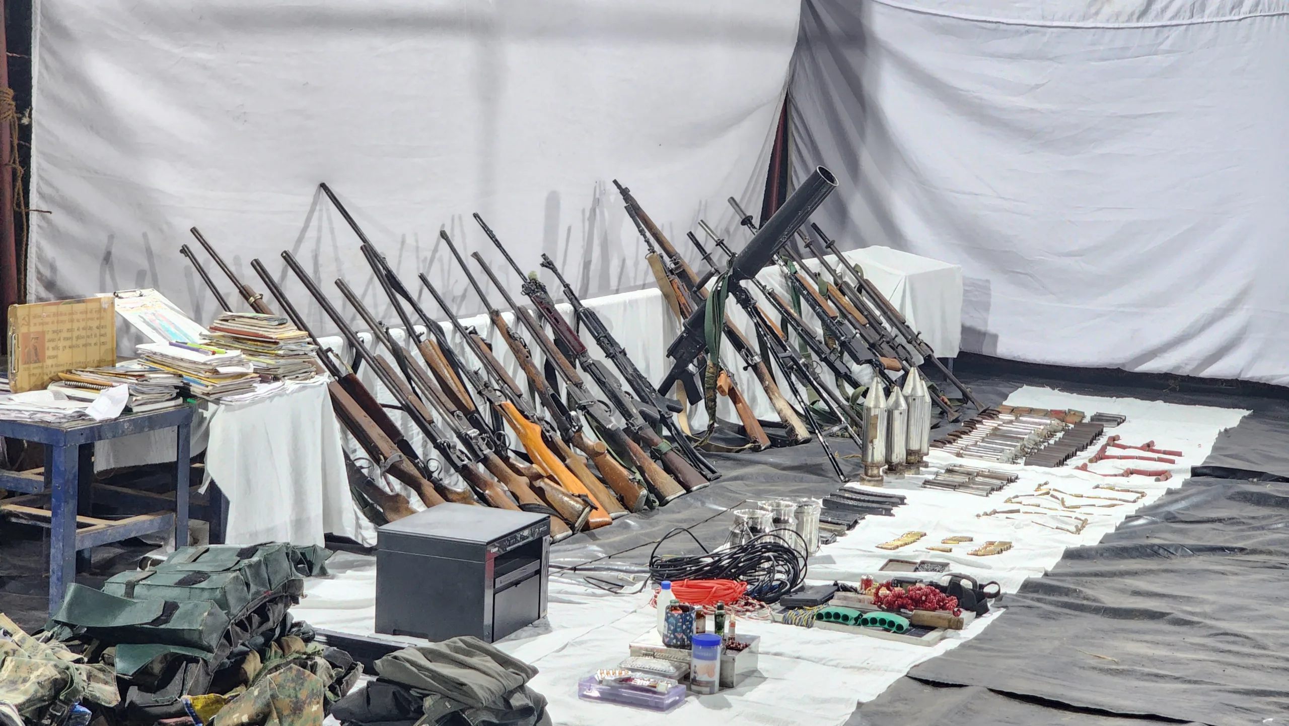 The bodies of the slain Maoists along with the seized arsenal of weapons and ammunitions were later brought to the district headquarters on late Sunday evening. The recovery includes sophisticated weapon including AK-47, Insas, SLR rifle and BGL launchers.