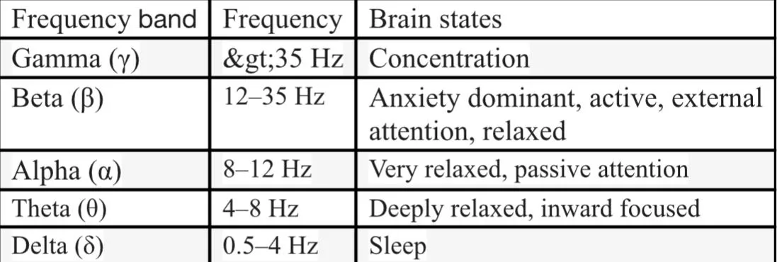 Table 2 – Frequency of brain waves in different states, taken from Ref [ 19]