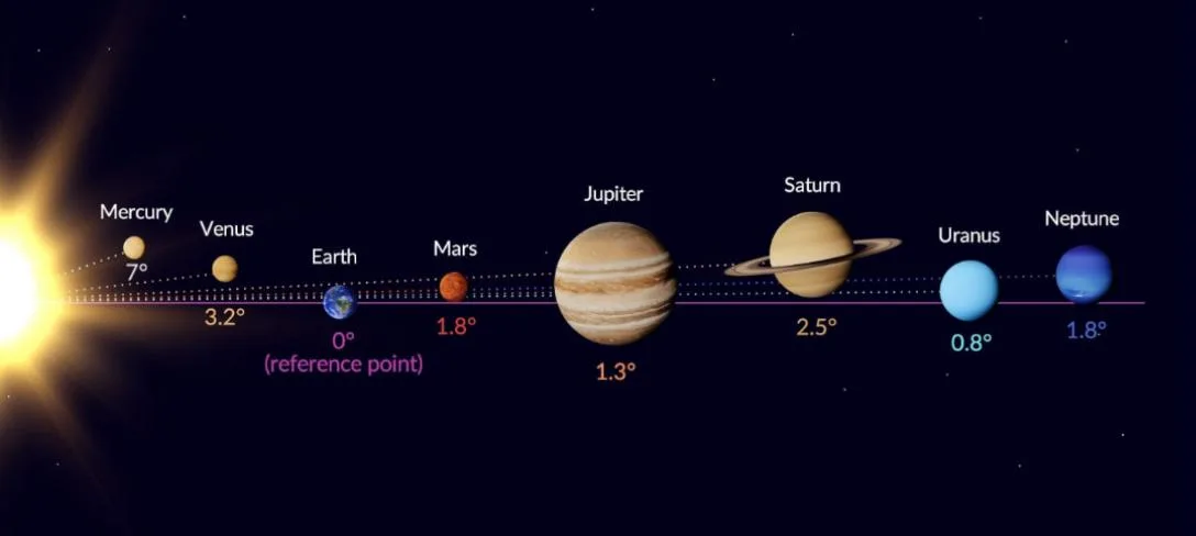 Figure 4- Celestial plane, showing the angles made by planes of different planets with that of Earth