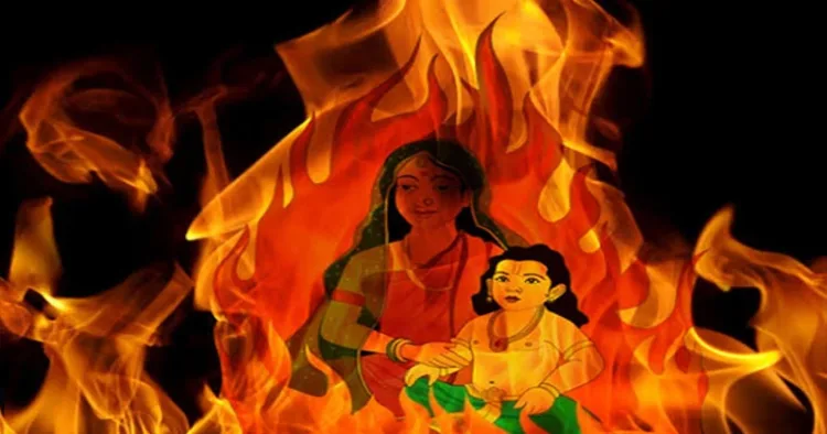 Holika tricked Prahlad into sitting on a pyre with her, confident that she would emerge unscathed while he perished. However, divine intervention ensured that Holika burned to ashes, while Prahlad remained unharmed. This event is commemorated through the burning of Holika effigies, symbolising the triumph of good over evil.