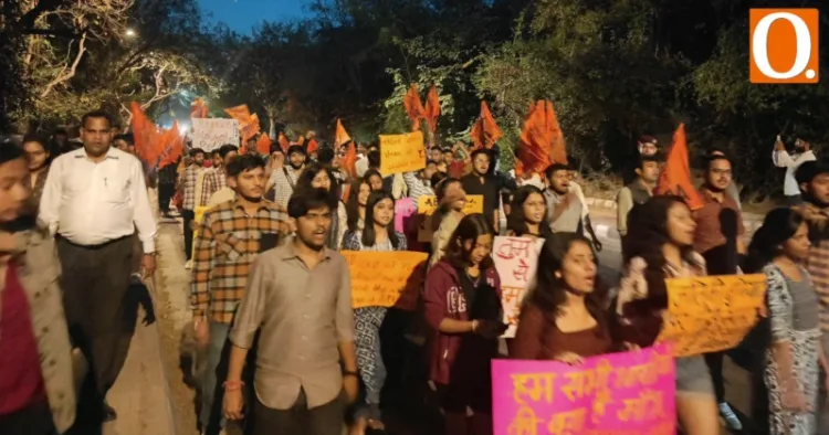 In protest against divisive slogans raised by JNUSU General Secretary, ABVP-JNU organised 'JNU Ekaatmata Yatra' with over 300 students. The march, from Ganga Dhaba to Barak Hostel, reaffirmed commitment… pic.twitter.com/EODMk0lPsI
