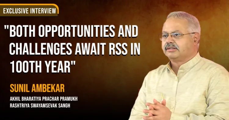 Akhil Bharatiya Prachar Pramukh of Rashtriya Swayamsevak Sangh Sunil Ambekar spoke with Prafulla Ketkar, Editor, Organiser and Hitesh Shankar, Editor, Panchjanya during the Akhil Bharatiya Pratinidhi Sabha held in Bengaluru from March 21 to 23. He spoke at length about various aspects of RSS and on the plans of completion of centenary year of Sangh work. Excerpts: