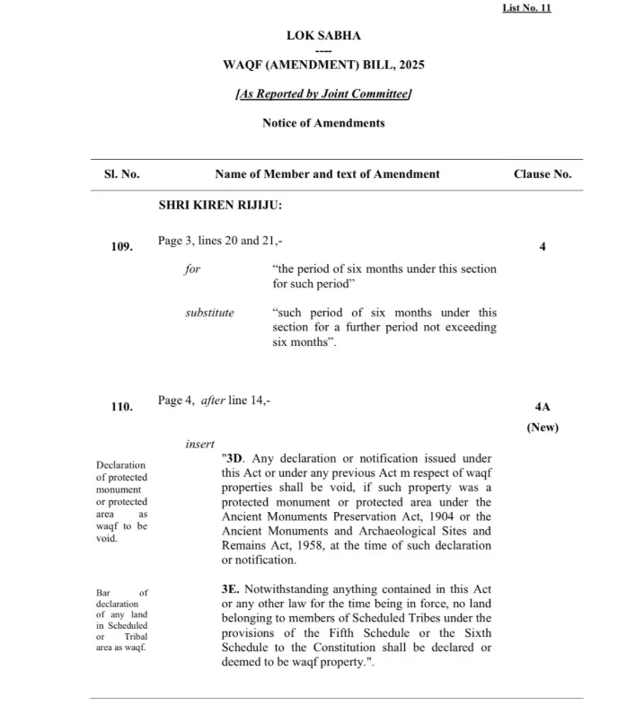 3D. Any declaration or notification issued under this Act or under any previous Act m respect of waqf properties shall be void, if such property was a protected monument or protected area under the Ancient Monuments Preservation Act,… pic.twitter.com/r2ZLA7uGzP