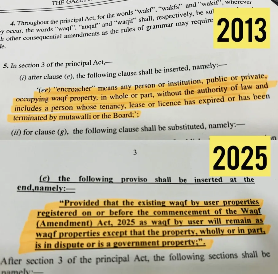 Implication: This amendment ensures that Waqf claims cannot extend to properties protected under the Archaeological Survey of India (ASI). This decision stems from the understanding that ASI is merely a custodian of these properties, which may not necessarily be government assets. By securing national heritage from unauthorised claims, the amendment strengthens Bharat’s cultural preservation framework.