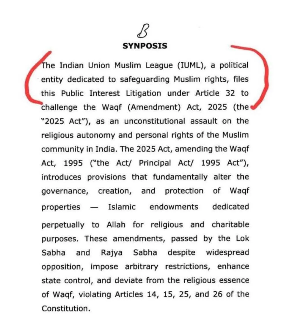 The Indian Union Muslim League (IUML) has come under renewed scrutiny after a line in its Supreme Court Waqf affidavit described it as “a political entity dedicated to safeguarding Muslim rights,” raising questions over the party’s longstanding assertion of being secular.