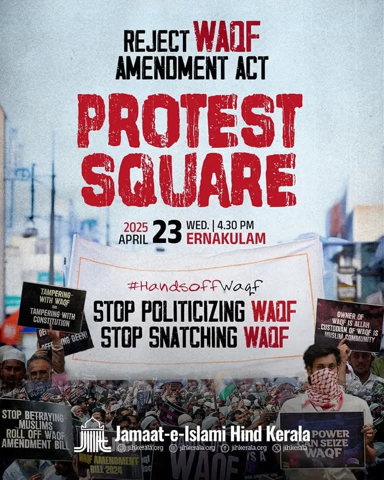 A protest was held earlier by Jamaat-e-Islami-linked groups, Solidarity Youth Movement and Students Islamic Organization of India (SIO), near Karipur International Airport in Kerala, against the anti-Waqf Bill, sparking controversy after featuring Islamist ideologues Hassan al-Banna, Sayyid Qutb, Hamas founder Ahmed Yassin, and Hamas leader Yahya Sinwar, raising serious security concerns.
