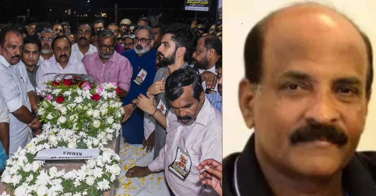 Even in her moment of deepest sorrow, Sheela, the wife of Ramachandran, expressed a solemn wish: that the patriotic Ganageetham, “Parama Pavithramathamee Mannil Bharathambaye Poojikkan,” be sung during his final rites. Her request was not merely ceremonial, but a heartfelt tribute to her husband’s lifelong commitment to the nation.