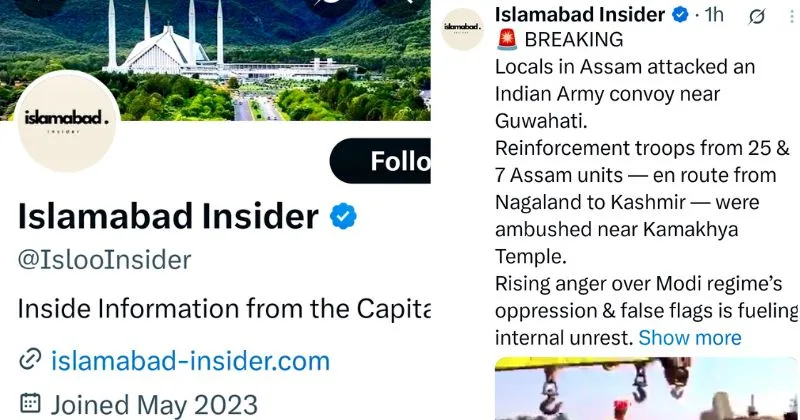 Guwahati: In a fresh instance of cross-border misinformation, a Pakistani X (formerly Twitter) handle named ‘Islamabad Insider’ has come under fire for spreading a fake video claiming an attack on an Indian Army convoy near Kamakhya Gate in Guwahati, Assam. The Assam Police promptly debunked the claims, calling it a “deliberate attempt to spread falsehood and incite unrest.”