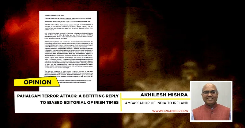 The Pahalgam attack has been condemned worldwide. President of the European Union, Ursula von der Leyen, was among the first global leaders to condemn the vile terror attack”. The UN Security Council also unanimously “condemned in strongest terms the terrorist attack” and underlined “the need to hold perpetrators, organisers, financiers and sponsors of this reprehensible act of terrorism accountable and bring them to justice” (The Irish Times failed to mention this main operative portion of the UN statement).