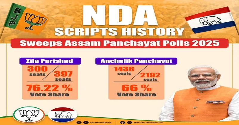 Guwahati: In a decisive show of strength ahead of the 2026 Assam Assembly elections, the BJP-led alliance has scored a sweeping victory in the panchayat polls across the state, bagging 300 out of 397 District Council seats, effectively sidelining the opposition Congress and other regional players.