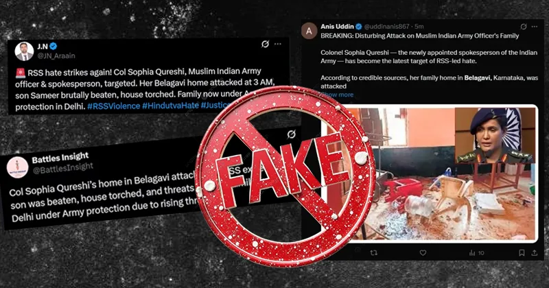 A viral fake news post on social media platform X has falsely alleged that Indian Army Colonel Sofiya Qureshi and her family were attacked by Rashtriya Swayamsevak Sangh (RSS) members in Gokak taluk, Belagavi district.