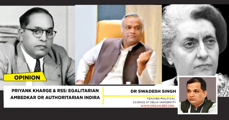 Finally, when Priyank Kharge is talking about banning RSS – amidst inhuman atrocities during the Emergency, in the absence of opposition, for politics of appeasement and to please their masters sitting abroad – he should also decide whether he would like to stand with the Constitution and ideas of egalitarian Babasaheb Ambedkar or with the ideas of authoritarian Indira Gandhi. He should decide his role and the public will decide about him in the times to come.