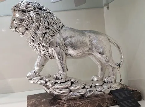 PM Modi gifted a hand-etched silver lion on a Fuchsite stone base to the President of Argentina, Javier Milei. The intricately detailed lion symbolises courage and leadership, while the green Fuchsite — known as the “Stone of Healing and Resilience” — adds natural depth and meaning. This piece represents Rajasthan’s renowned metalwork and gemstone craftsmanship, created using materials sourced from India’s mineral-rich regions.