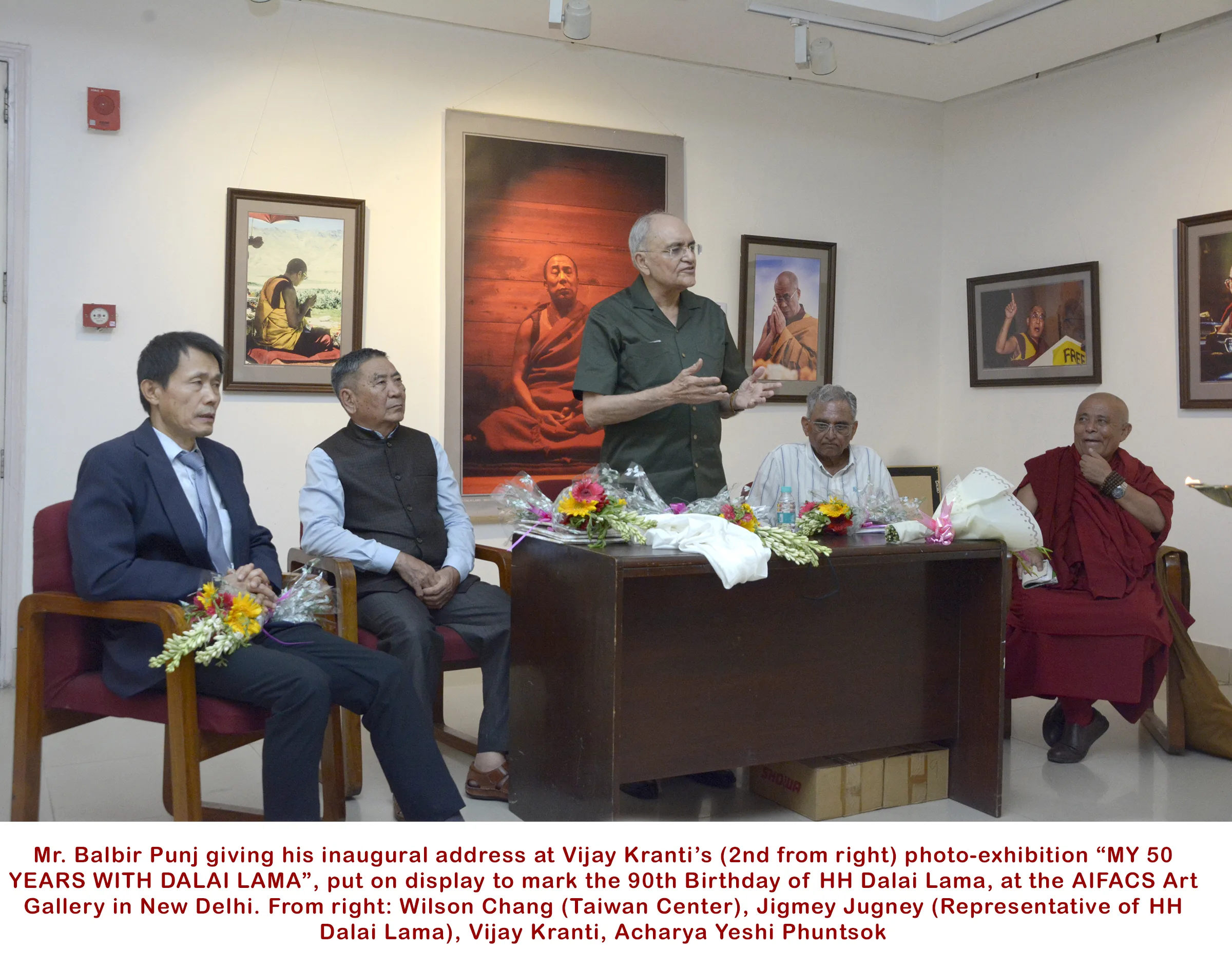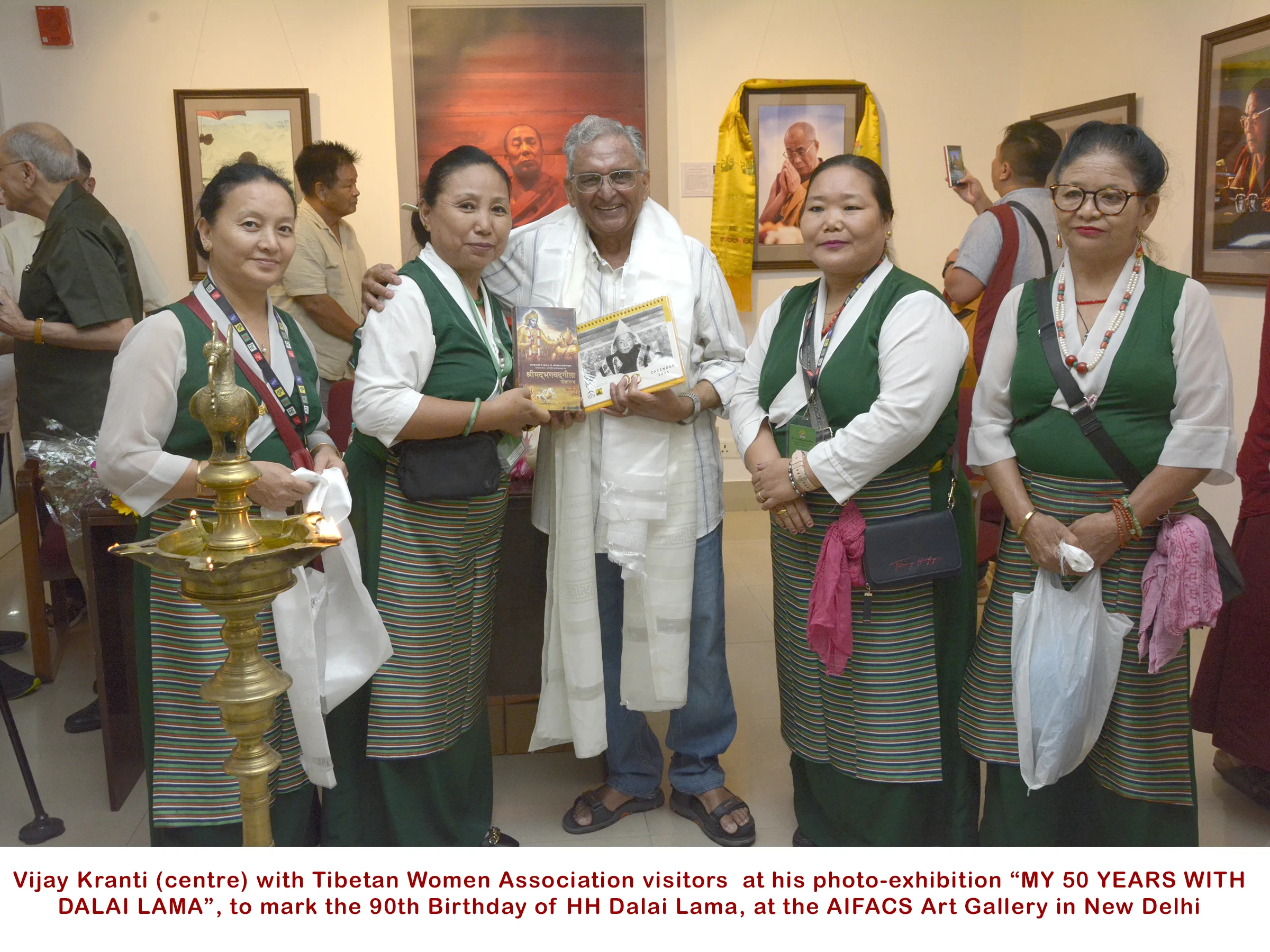 As a mark to celebrate the 90th birthday of His Holiness The Dalai Lama, Vijay Kranti, a senior journalist, Tibetologist, photographer and a long term close associate of the Tibetan leader put up a unique photo-exhibition of some of his exclusive, interesting and historic portraits and camera-studies of Dalai Lama at the AIFACS art gallery in New Delhi from his personal archive. He has taken these photos over five decades during his numerous one-to-one interview sessions and travels with the Dalai Lama in India and some other countries as his personal photographer. Interestingly, a parallel exhibition of another set of Vijay’s photos of the Nobel Peace prize winning monk statesman is also on show at Freiburg in Germany these days.