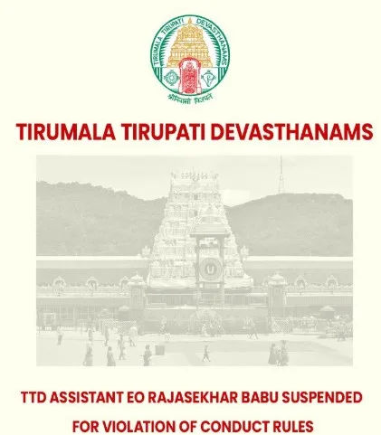 TTD AEO Rajasekhar Babu suspended for violating conduct rules.