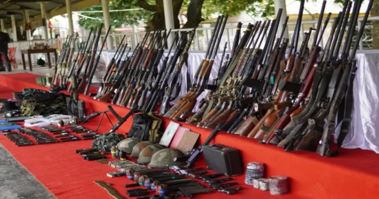 As per the release, a total of 86 weapons were recovered, including five AK series rifles, three INSAS rifles, sixteen self-loading rifles (SLRs), and five .303 rifles. Additionally, nineteen pistols, two carbines, sixty other rifles, sixteen single-barrel breech-loading (SBBL) or bore action guns, two anti-riot guns, one Joint Venture Protective Carbine (JVPC), one double-barrel breech-loading (DBBL) gun, six bolt-action guns, and one two-inch mortar were also seized.