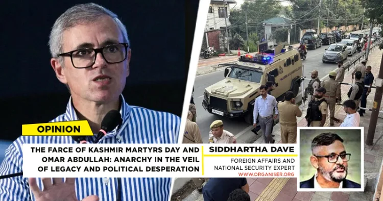 On July 14 2025, a curious and disturbing political theatre unfolded in Srinagar, reminiscent of anarchy-driven tactics often associated with Delhi Chief Minister Arvind Kejriwal. But this time, it was staged by Omar Abdullah, current Chief Minister of the Union Territory of J&K and a scion of the politically waning Abdullah dynasty. The scene? A desperate attempt to revive the controversial and now-redundant observance of “Kashmir Martyrs’ Day” (Youm-e-Shuhada-e-Kashmir), a practice abandoned after the historic abrogation of Article 370 on August 5 2019.