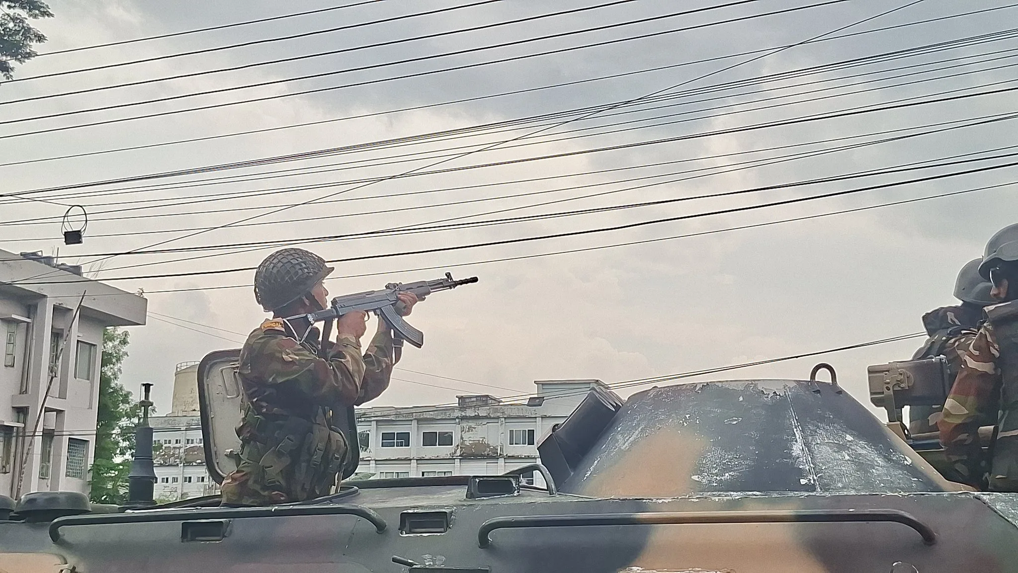 Meanwhile, videos from the site show blood-soaked clothes, injured students lying on roads, and military forces standing guard amid shattered glass and burnt vehicles, a chilling reminder of the dark days of political suppression.