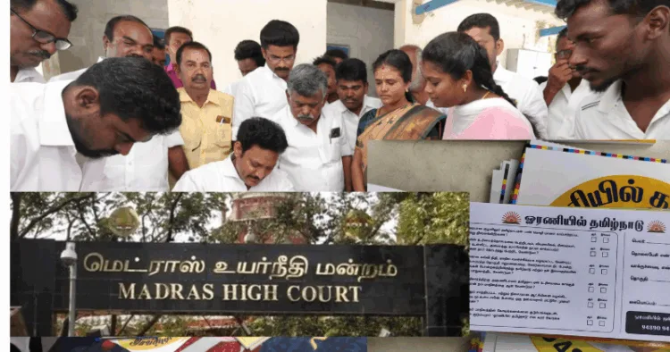 In this context, Rajkumar, a resident of Sivaganga district, has moved the Madurai Bench of the Madras High Court with a petition seeking action against the DMK’s General Secretary over the alleged unauthorised collection of Aadhaar and other personal data under the banner of the party’s Oraniyil Tamil Nadu membership campaign. The petitioner has also sought an immediate directive to halt the collection of Aadhaar numbers, mobile numbers, and OTPs for political purposes.