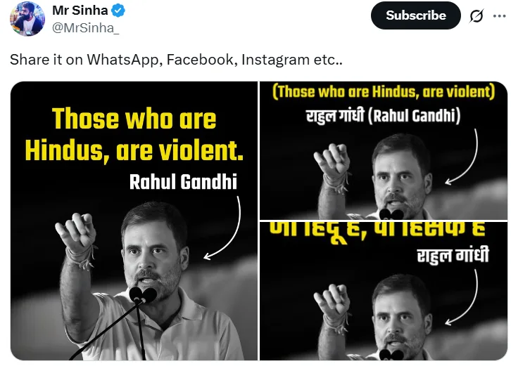 Sharing manipulated content that allegedly misrepresents Rahul Gandhi’s statements
