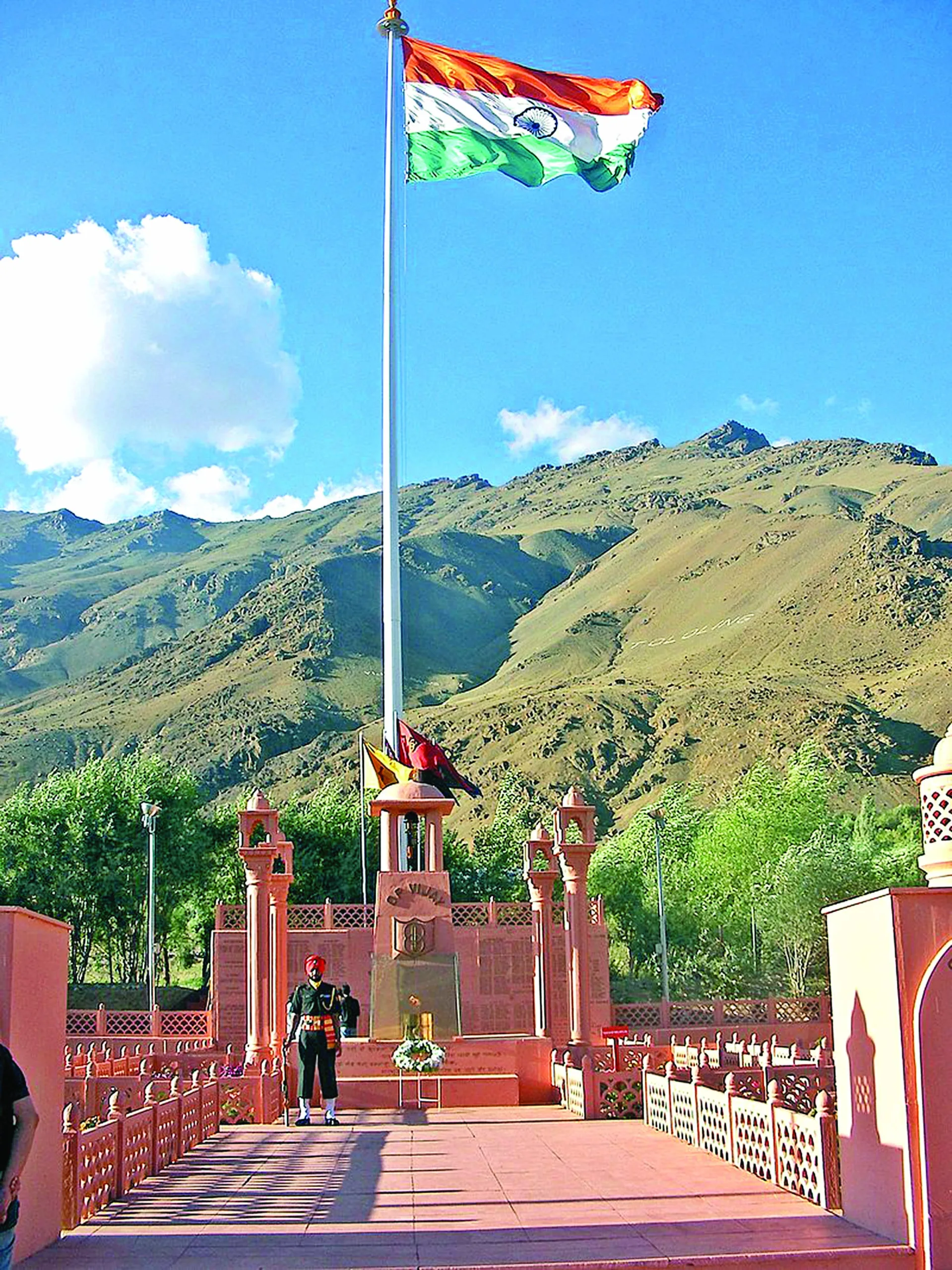 Next day on July 4, we visited Kargil War Memorial, built in the honour of the war heroes who gave their supreme sacrifice in defending our motherland. The Kargil War Memorial stands at the foothill of the Tololing Mountain. Visible from the site are the Tololing Heights, Tiger Hill, and Point 4875 (Batra Top), where fighting took place during the conflict. To step onto the grounds of this memorial is to embark on a journey of reverence and reflection. The monument features a striking sculpture where soldiers stand tall, unfurling the tricolour flag in a symbol of unwavering patriotism. It is a vivid portrayal of their indomitable spirit and resounding victory. The central feature of the memorial is a pink sandstone wall bearing a brass plate engraved with names of all 545 martyrs who died during Operation Vijay. When you wander amidst the rows of tombstones, the echoes of their sacrifice reverberate through your being. It’s a sight that stirs one’s heart, filling it with gratitude towards the Bravehearts. From the Amar Jawan Jyoti to the Wall of Heroes, every corner of the memorial tells a story of courage, indomitable spirit and sacrifice.