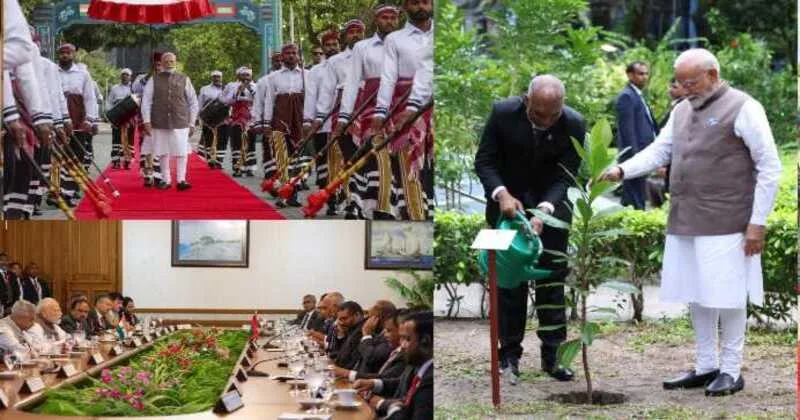 Prime Minister Narendra Modi continued his two-day state visit to the Maldives on July 25, reaffirming the historic and strategic depth of the Indo-Maldivian partnership. Visiting as the Guest of Honour for the Maldives’ 60th Independence Day celebrations, PM Modi held extensive talks with President Mohamed Muizzu and announced a series of major initiatives aimed at elevating the bilateral relationship across trade, defence, and connectivity.