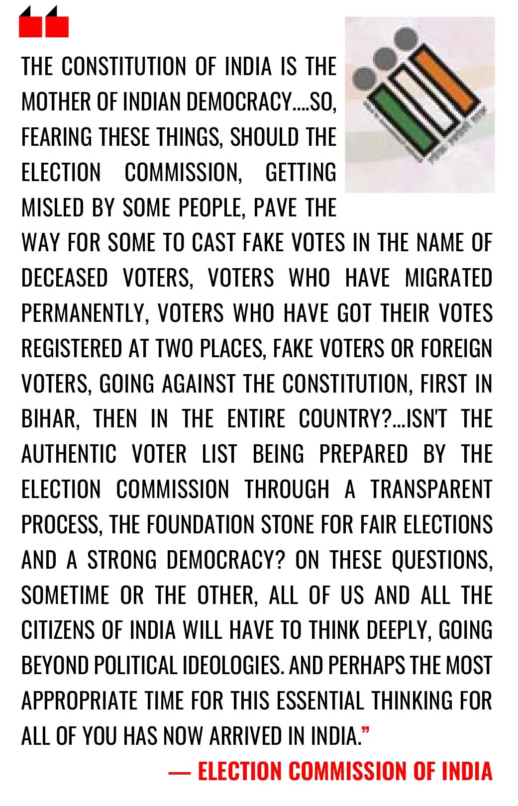 As the custodian of free and fair elections, the Commission is constitutionally obligated to ensure that only Indian citizens are included in the electoral rolls. In light of this, the EC has resolved to conduct a Special Intensive Revision (SIR) across the country, beginning with Bihar. The last such comprehensive revision in Bihar was undertaken in 2003.