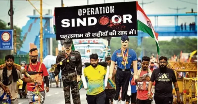 During the holy month of Shravan, six youths from Delhi embarked on a special Kanwar Yatra from Haridwar to Delhi, named “Operation Sindoor.” This yatra was dedicated to the souls of the soldiers martyred in the Pahalgam terrorist attack. The Kanwar featured tableaux depicting Air Force and BSF soldiers in uniform, with the Tricolor waving alongside. This yatra has become a powerful symbol of divine devotion intertwined with patriotism and a tribute to our soldiers’ sacrifices.