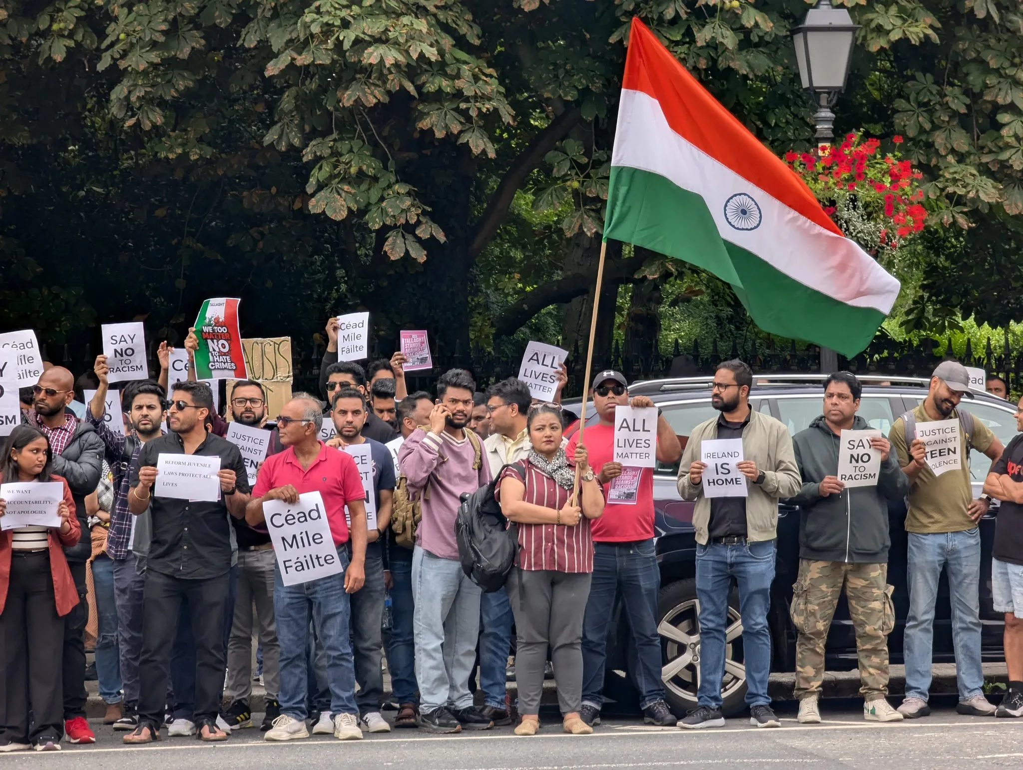 Public anger spilt onto the streets as over 800 people, including members of the Indian, Bangladeshi, and Irish communities, marched in Dublin demanding justice. Protesters carried placards condemning racism and reaffirming their belonging to Irish society. The demonstrators walked from City Hall to the National Gallery, making a powerful statement against racial violence.