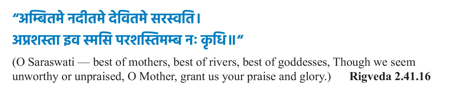 ADI BADRI, HARYANA- This hymn of Rigveda, written over 8,000 years ago, is a reverential invocation of several rivers, including Ganga, Yamuna, and Sarasvati, recognising them as sacred and vital forces in the Vedic civilisation. It proves that Sarasvati was mentioned alongside real and still-flowing rivers.