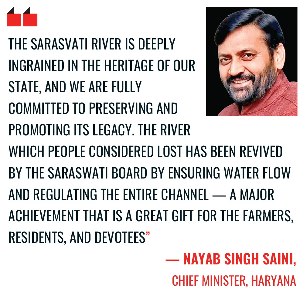 Today, from Bilaspur in Yamunanagar district to Vyaspur, where Rishi Vyas composed the Mahabharat the water of the Saraswati River is flowing through Kurukshetra, Yamunanagar, Kaithal, and some parts of Punjab where Saraswati merges into local water systems. From there, it continues to Jind, Fatehabad, and up to Sirsa, covering 400 km, where we’ve successfully restored water flow for the past three years.