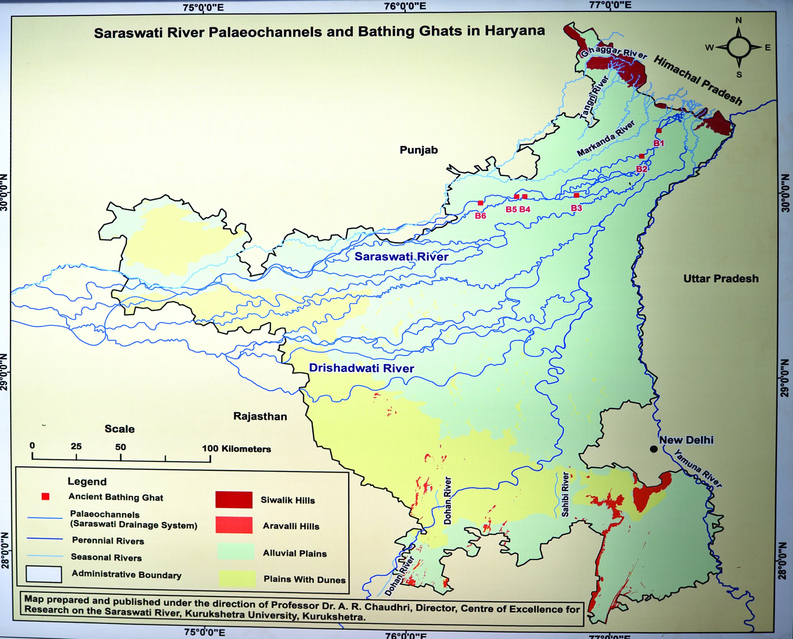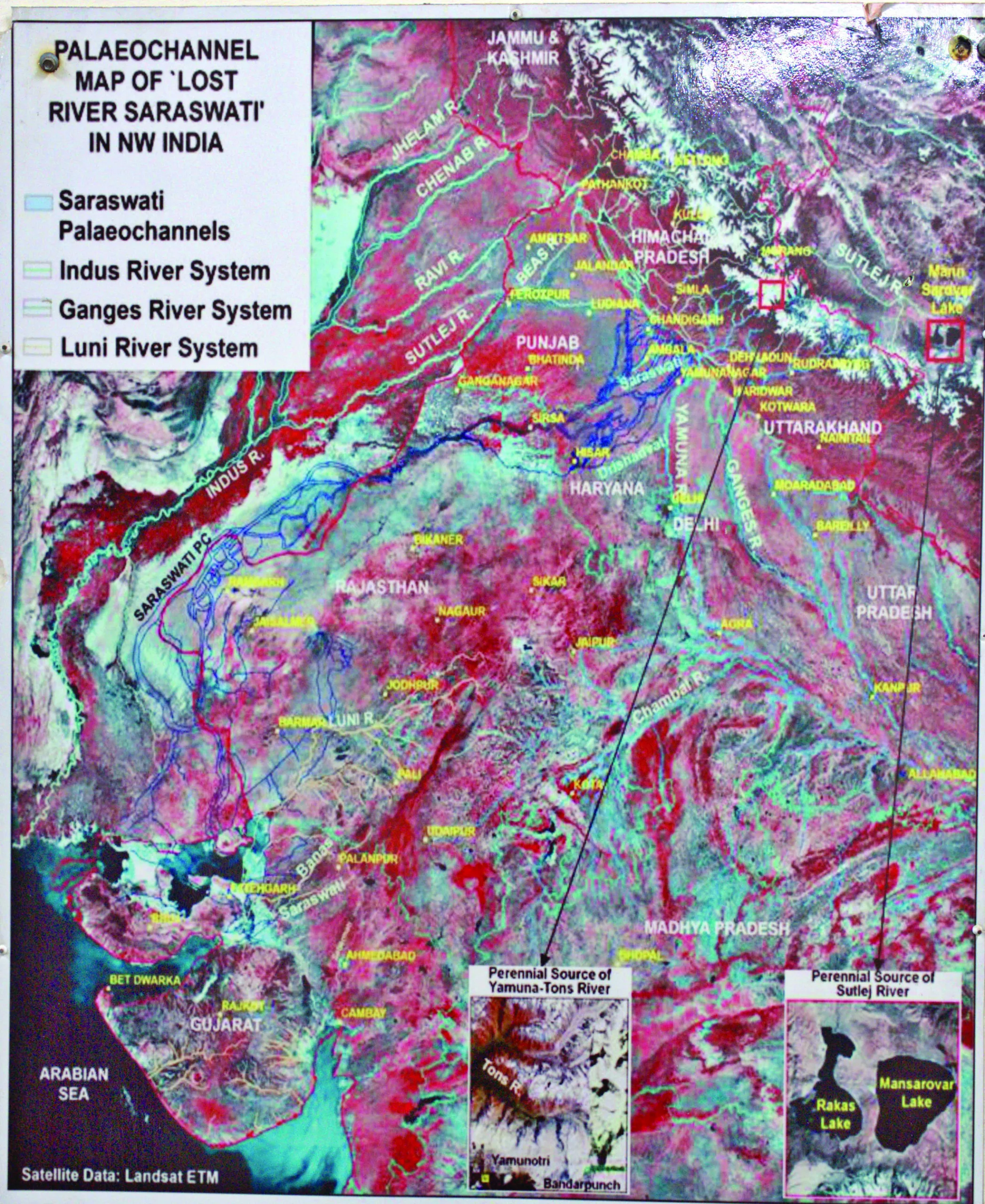 Remote Sensing and Satellite Imagery: High-resolution satellite imagery and remote sensing techniques have identified paleo-channels, dried river beds, and topographical features indicative of ancient river systems in the region by ISRO. Perennial sources such as the Sutlej and Yamuna rivers have been identified as part of the Vedic Saraswati River system.