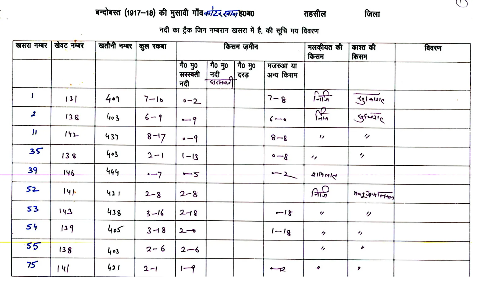 Revenue Record: In the 1917–1918 revenue records, the Saraswati River is clearly mentioned. (In legal terms, revenue records are considered solid evidence of land and territorial facts.) Village after village, revenue entries along the banks of the Saraswati have been found, which still