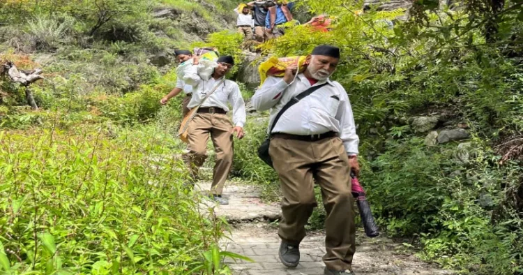 The deadly natural disaster that struck the Himalayan village of Dharali on the night of August 5, 2025, has brought the Rashtriya Swayamsevak Sangh (RSS) Sawayamsevaks into the forefront of relief and rehabilitation work. Among them, 70-year-old Department Union Leader Gulab Singh Negi ji stands out working tirelessly alongside the youth, embodying resilience and selfless service.