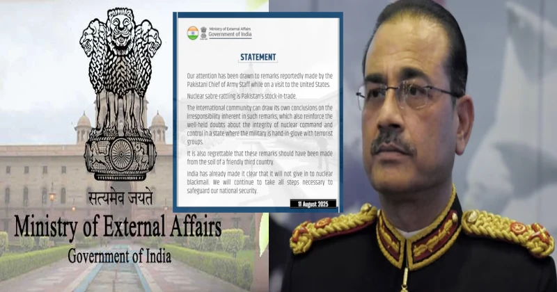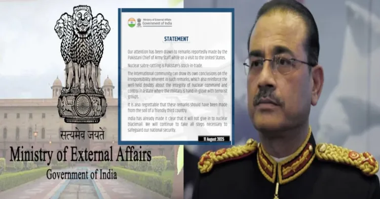 In response to Pakistan Army Chief General Asim Munir’s latest nuclear sabre-rattling, the Ministry of External Affairs (MEA) on August 11, called out Islamabad’s reckless posturing as a hallmark of its state policy, warning the international community of the real dangers such threats pose in the hands of a military intertwined with terrorist networks.