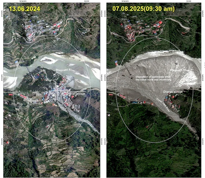 The Indian Space Research Organisation (ISRO) played a vital supporting role by releasing detailed satellite images captured by Cartosat-2S, comparing the affected area from June 13, 2024, and August 7, 2025. These images revealed the extent of devastation, showing a vast fan-shaped debris field of nearly 20 hectares at the confluence of the Kheer Gad stream and Bhagirathi River.