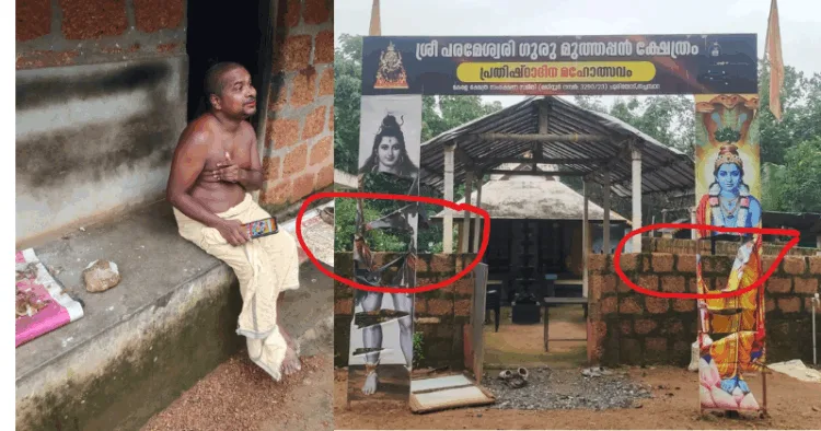 In a disturbing case of religious hate crime, Islamic fundamentalists allegedly targeted the Parameshwari Guru Muthappan Temple in Thachambara Chooriyod, Mannarkkad, Palakkad, at midnight on August 9. The attackers attempted to remove the idol, destroyed the temple door, flex boards, and water pumps fixed to the well. They also pelted stones at the house of the differently abled (divyaang) Scheduled Caste poojari, Bineeshkumar, while hurling casteist and abusive remarks.