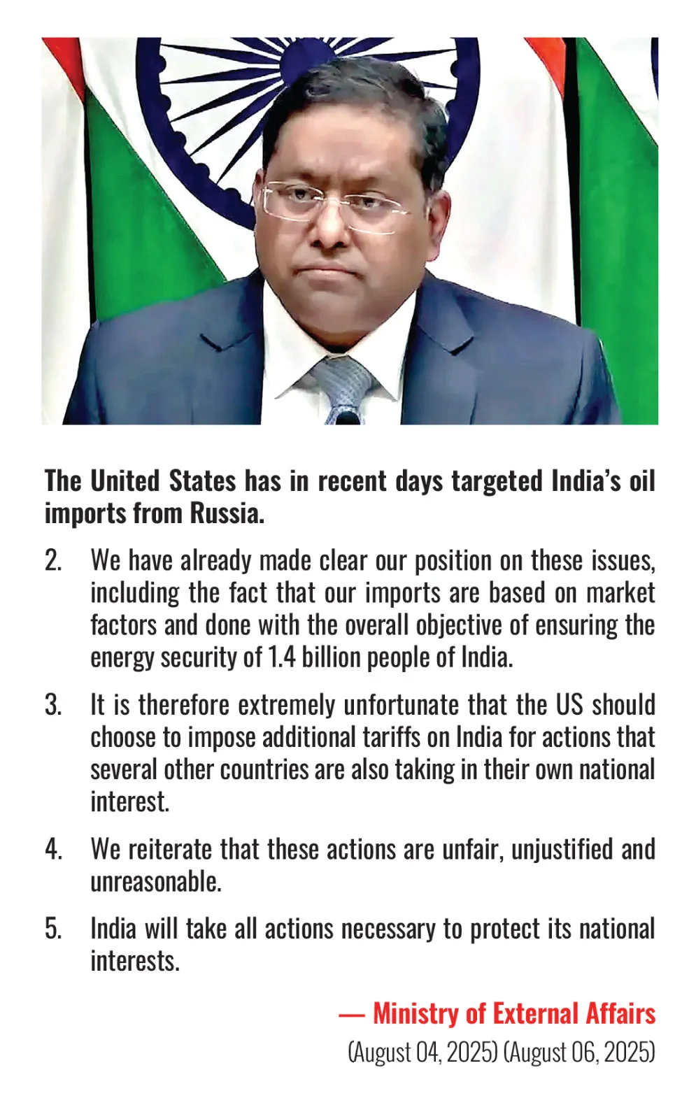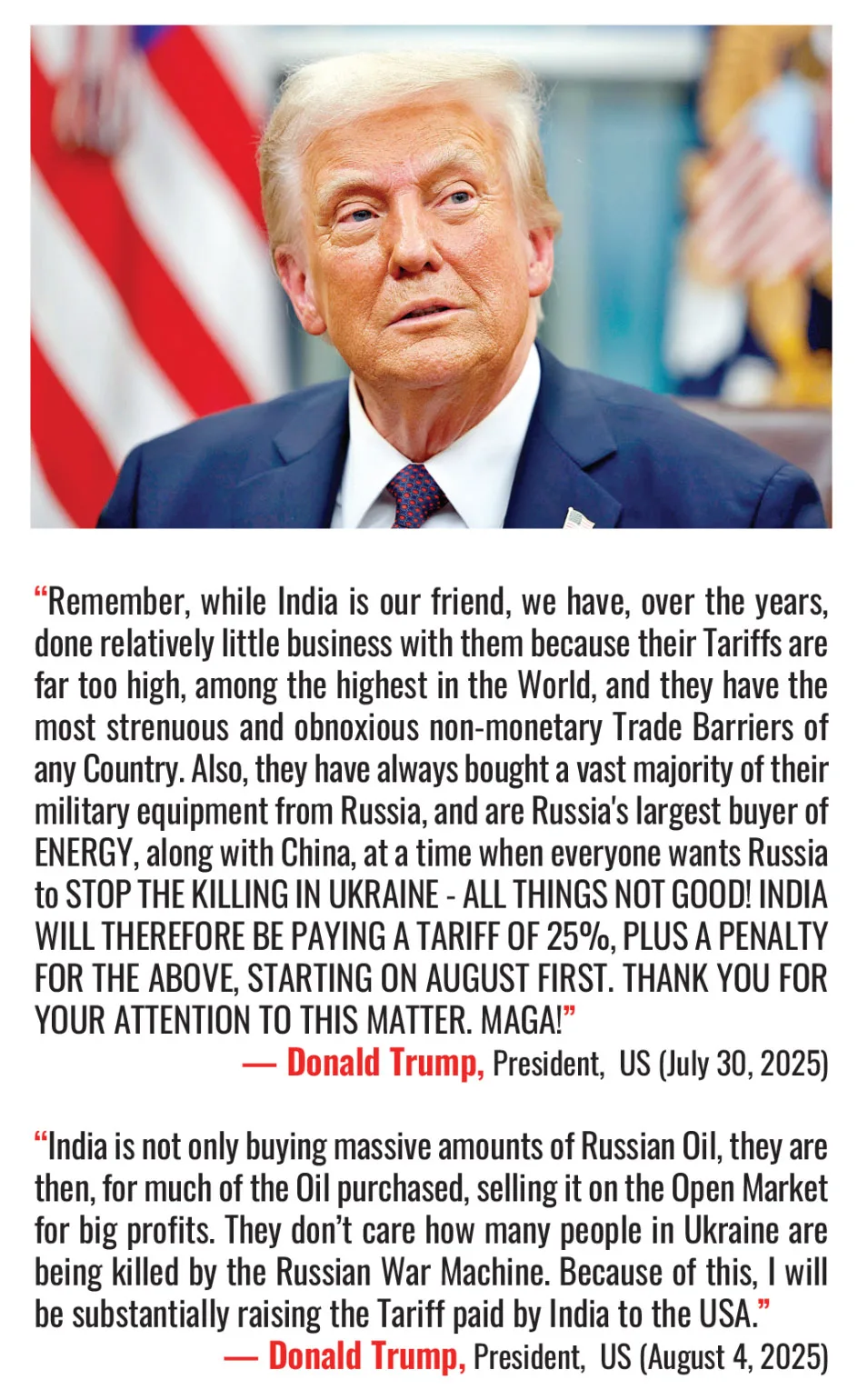 When one throws a burning coal at someone, first it burns their hand. An example of it can be seen in the US tariffs. Pharmaceuticals, which are an essential part of the US system, will get hurt severely with these tariffs on Bharat. Four out of ten prescription drugs in the US are supplied by Bharat companies. Since Bharatiya drugs are efficient and cheaper, they save USD 220 billion annually for the US healthcare system. Furthermore, the United States President has stated that they have signed a deal with Pakistan to set up oil reserves and eventually believe that Bharat would buy oil from Pakistan one day.